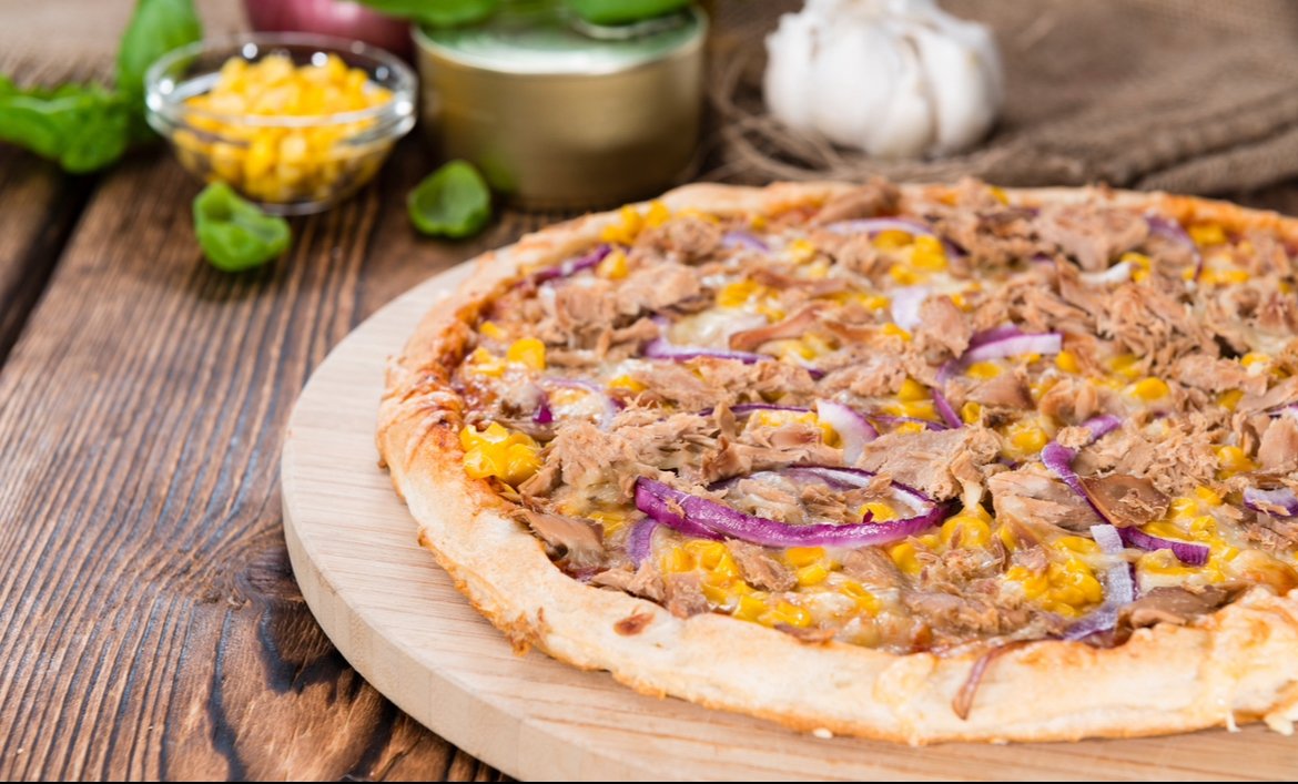 Mit saftiger Thunfisch, süßer Mais, aromatisch Zwiebeln & Knoblauch