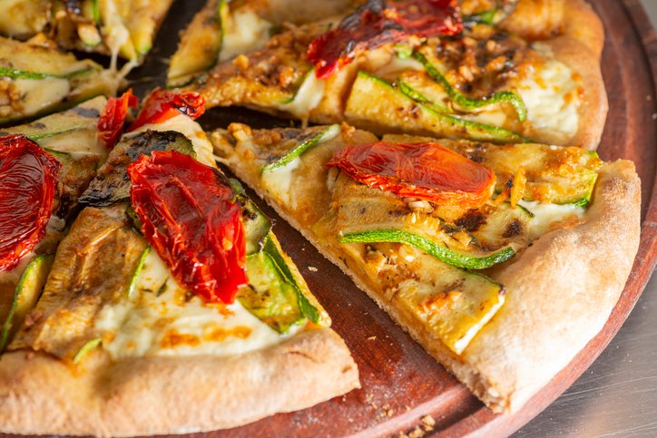 mit Creme Fraiche, Auberginen und Zucchini