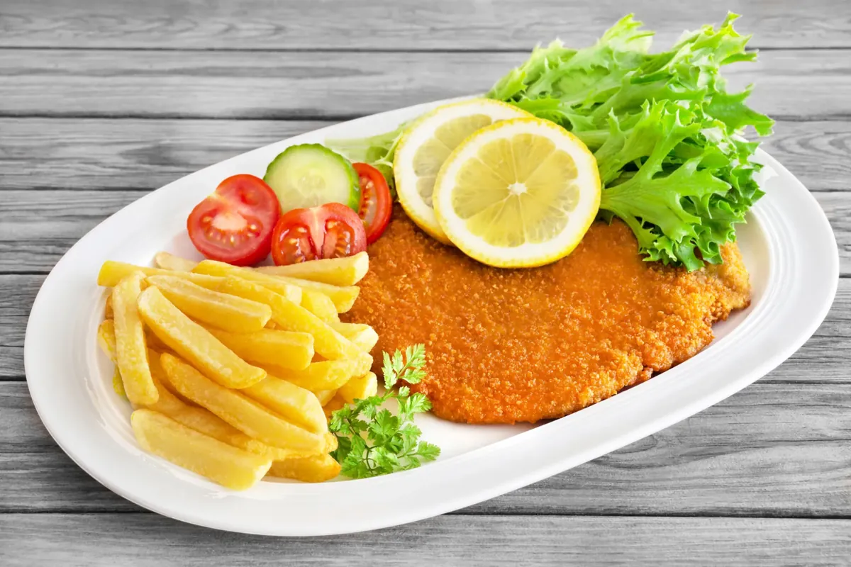 Zartes Schnitzel in knuspriger, goldbrauner Panade, serviert mit frischer Zitrone